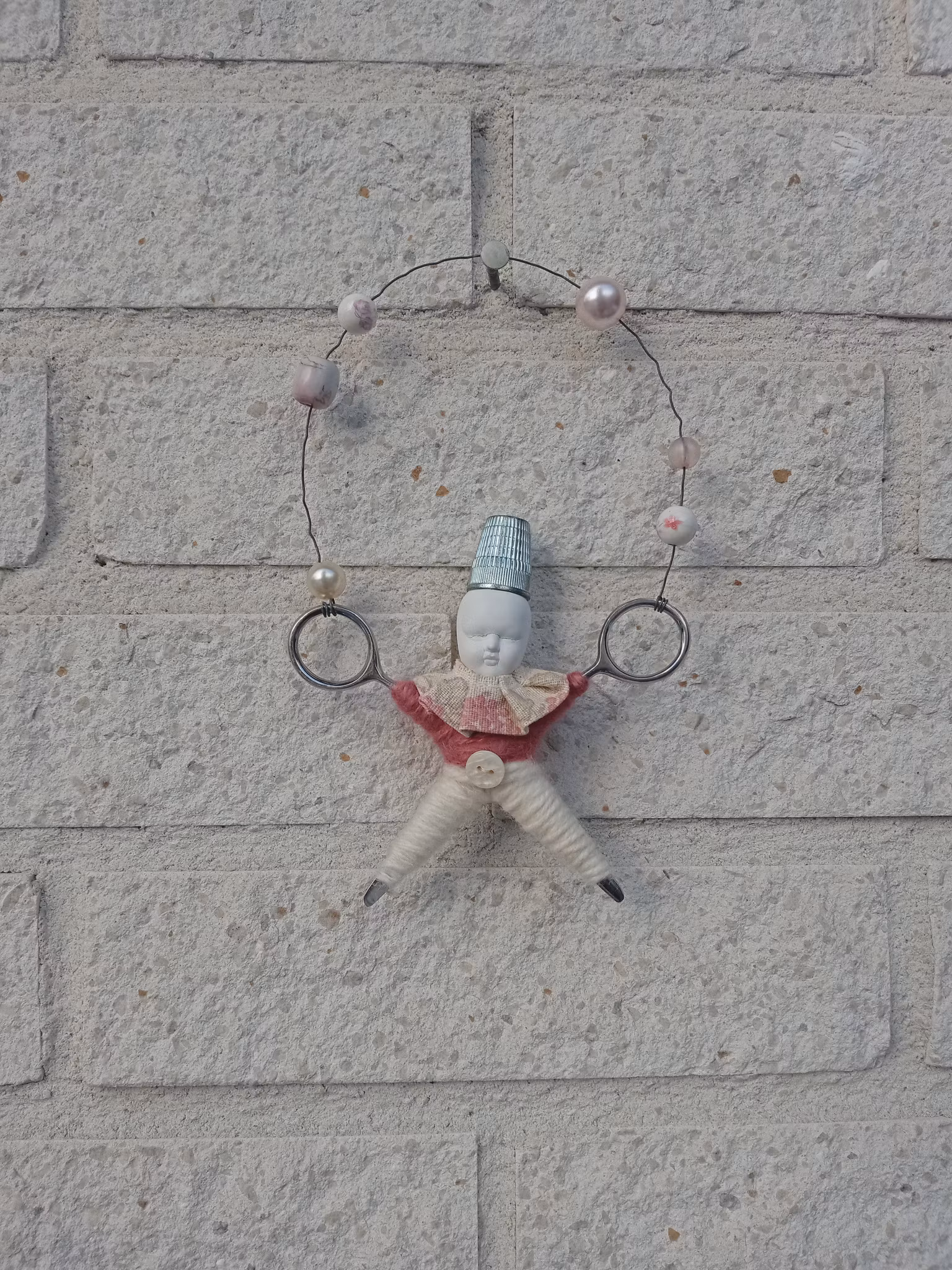 'Jonglörskan' 475 kr 'Jonglör' skapad av sax, diverse sybehör och med en fingerborg till hatt! Höjd: 19.5 cm Figurens höjd: 12.5 cm I lager. Lägg i korgen Lagersaldo: 1 Artikelnummer: 7 Dela Information 'Jonglör' skapad av sax, diverse sybehör och med en fingerborg till hatt! Höjd: 19.5 cm Figurens höjd: 12.5 cm