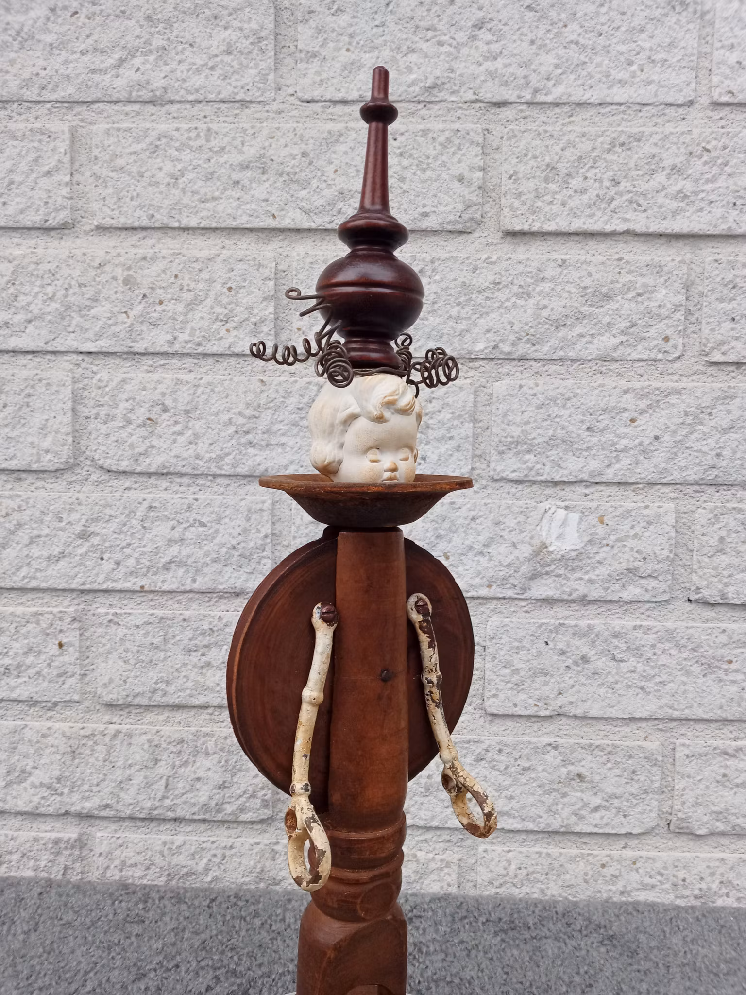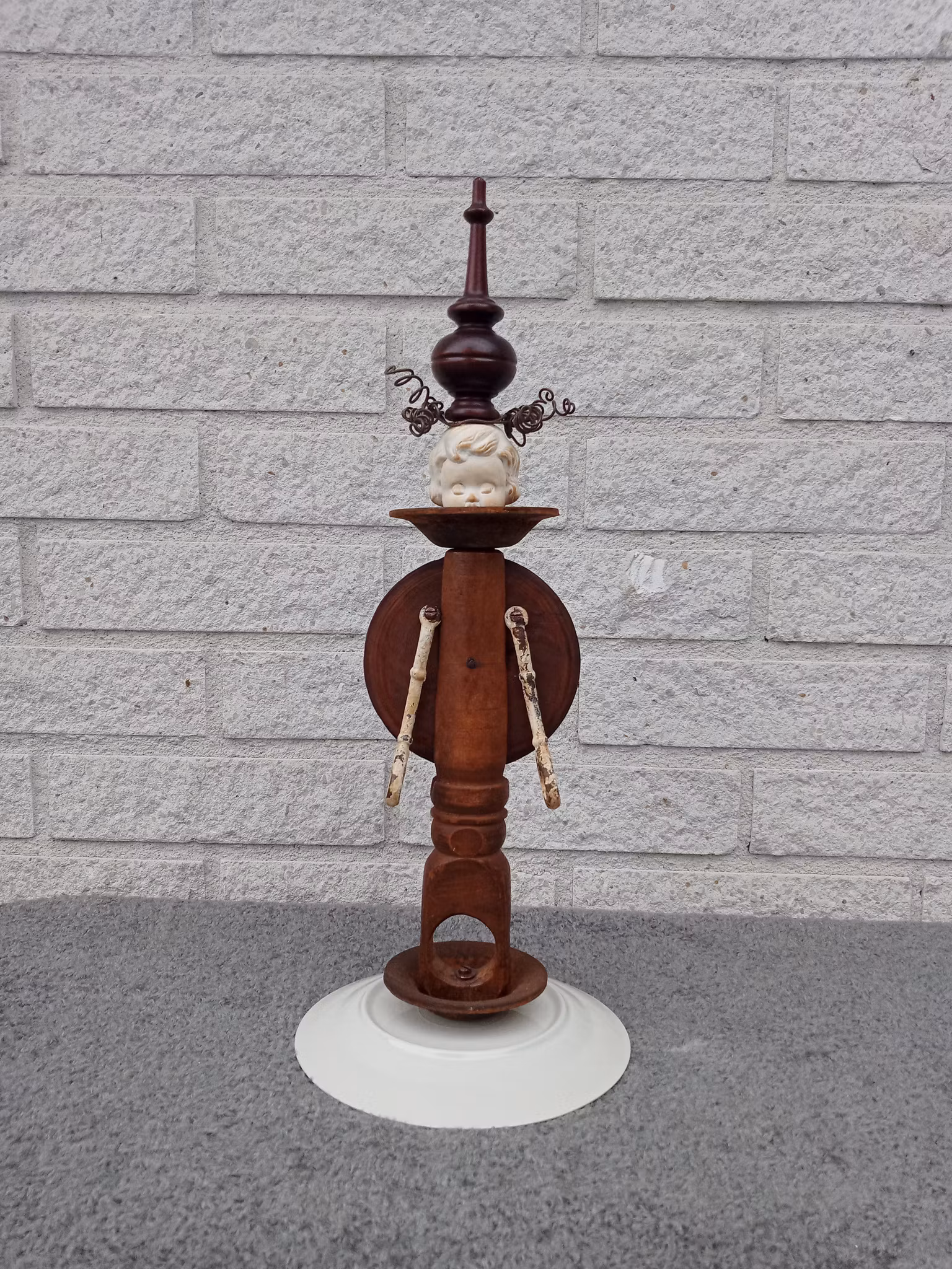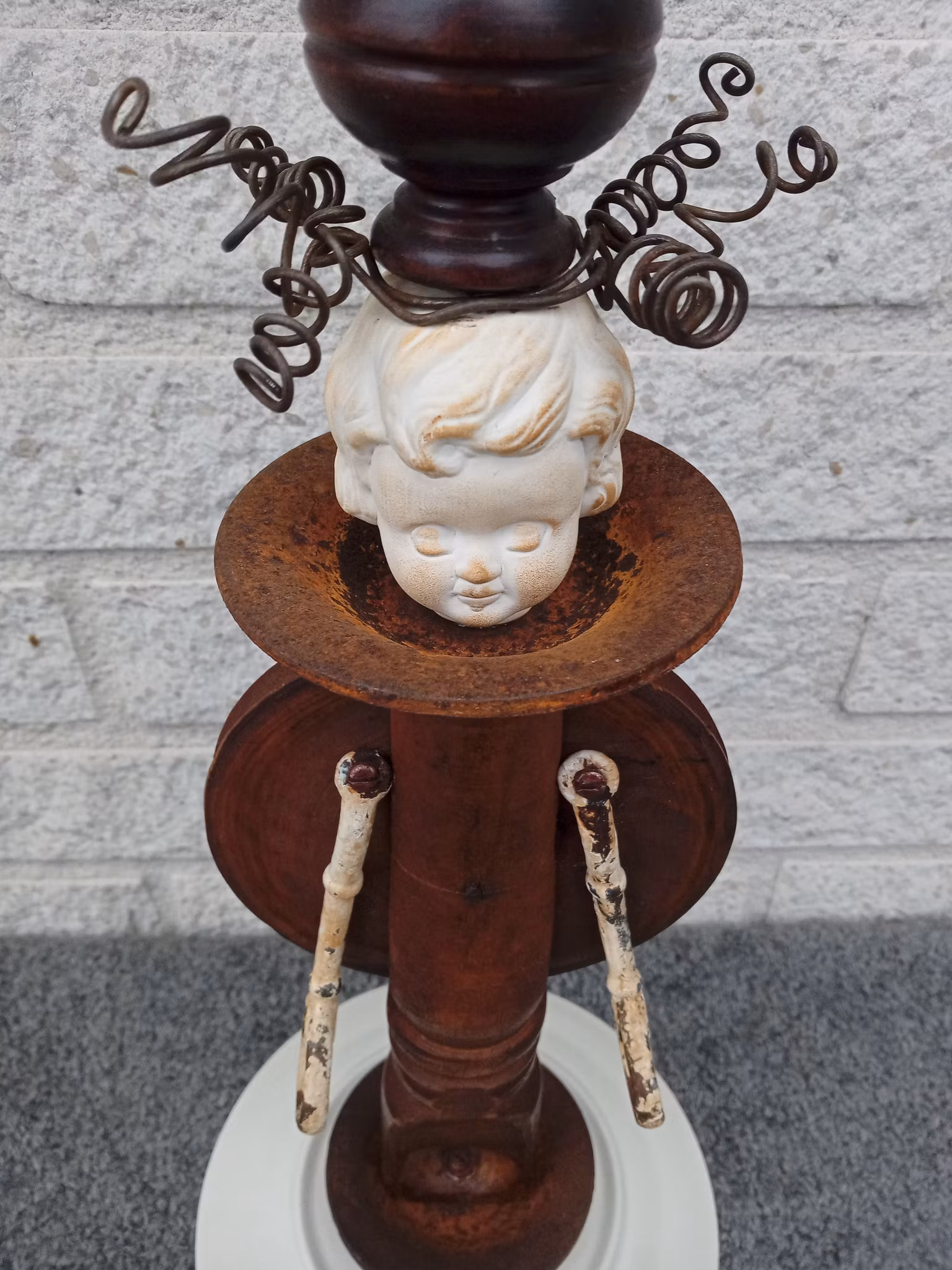 'Spira' 1 145 kr Figur tillverkad av bl.a gamla fönsterhaspar & en trätalja. Fot i keramik. Höjd: 46 cm I lager. Lägg i korgen Lagersaldo: 1 Artikelnummer: 20 Dela Information Figur tillverkad av bl.a gamla fönsterhaspar & en trätalja. Fot i keramik. Höjd: 46 cm
