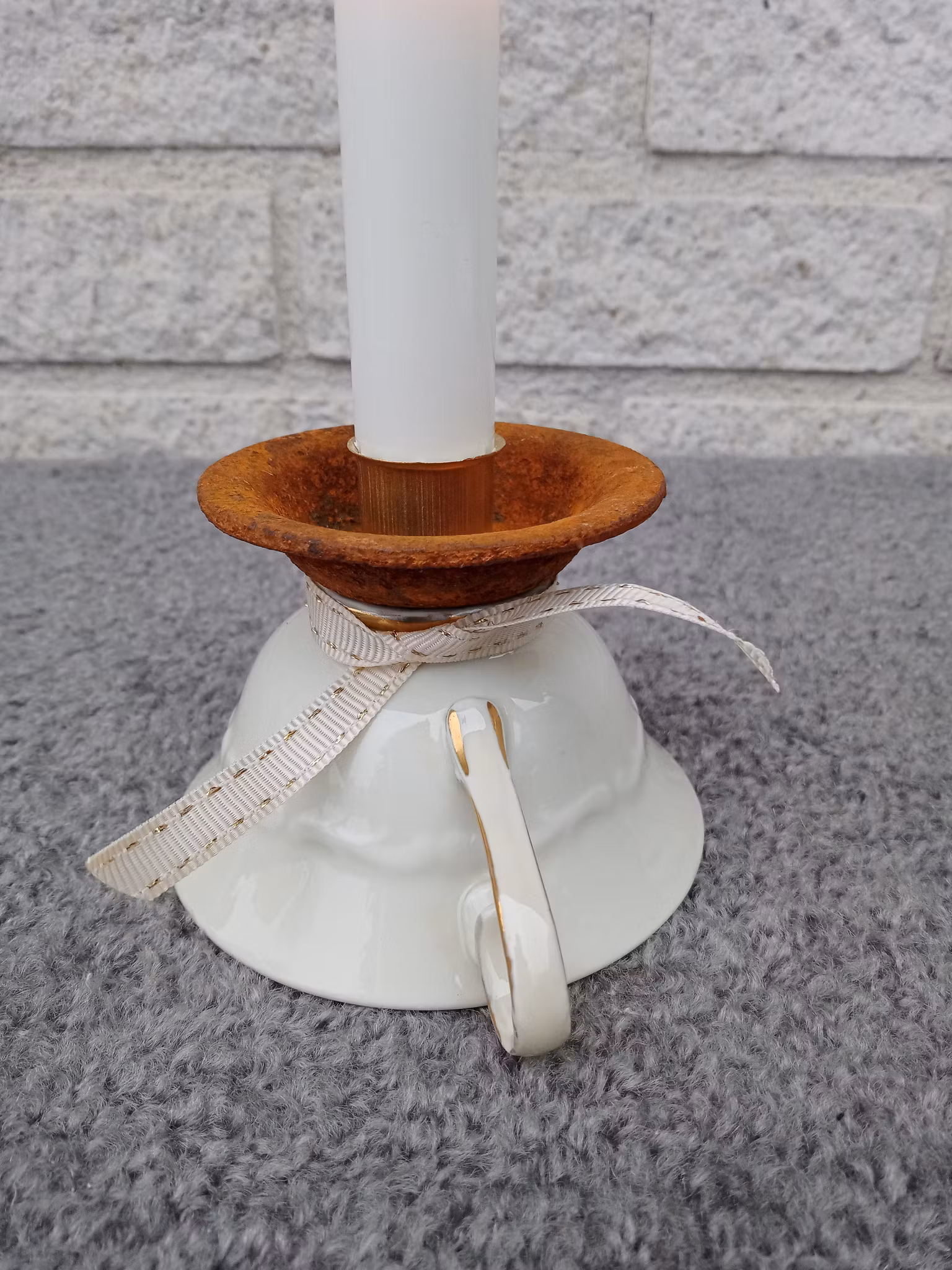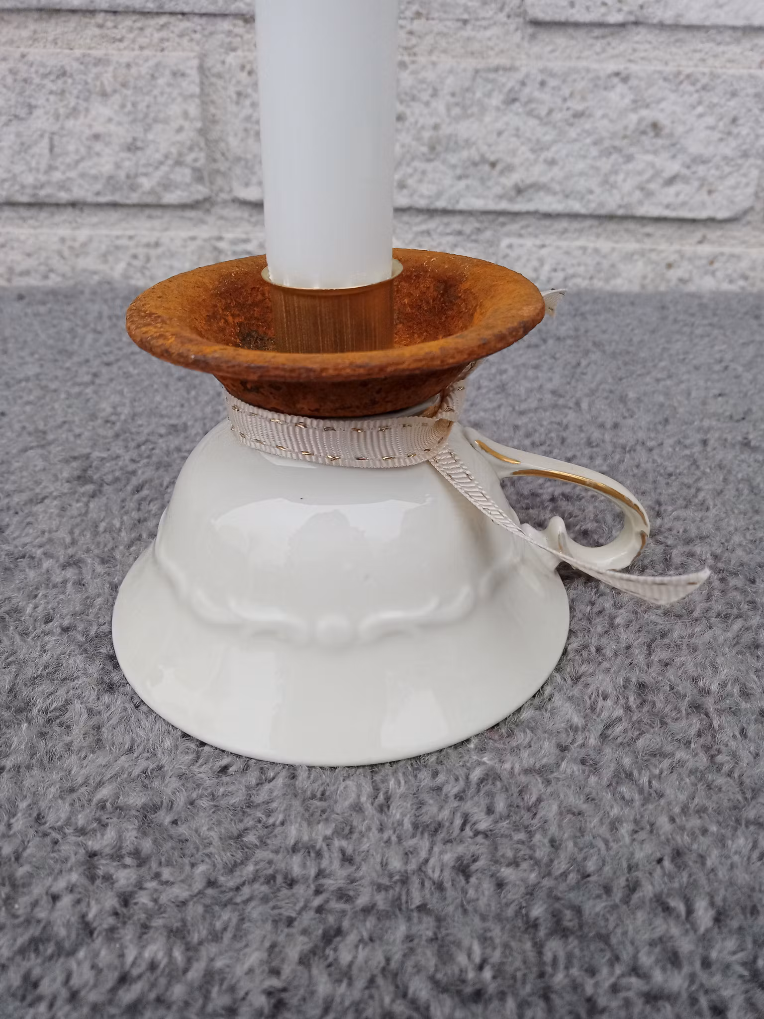 Kopp 'Karlskrona' 245 kr Kaffekopp från Karlskronas porslinsfabrik, 1940/50 tal. Ljusmanschett i metall. Diameter kopp 9.8 cm I lager. Lägg i korgen Lagersaldo: 1 Artikelnummer: 17 Dela Information Kaffekopp från Karlskronas porslinsfabrik, 1940/50 tal. Ljusmanschett i metall. Diameter kopp 9.8 cm