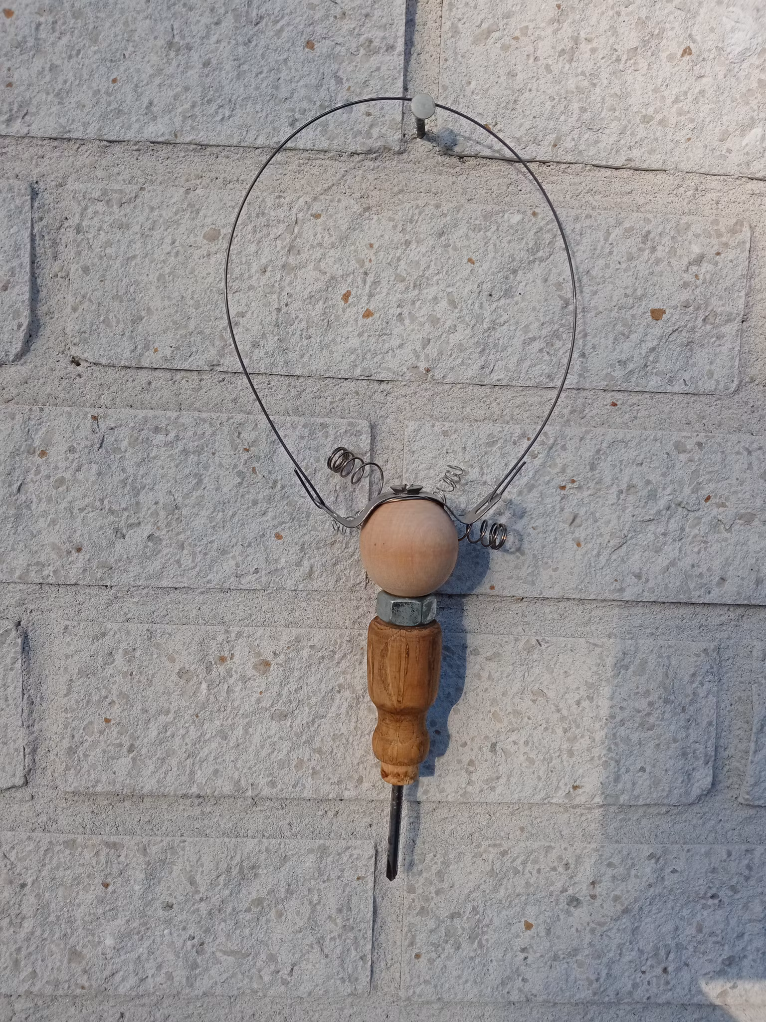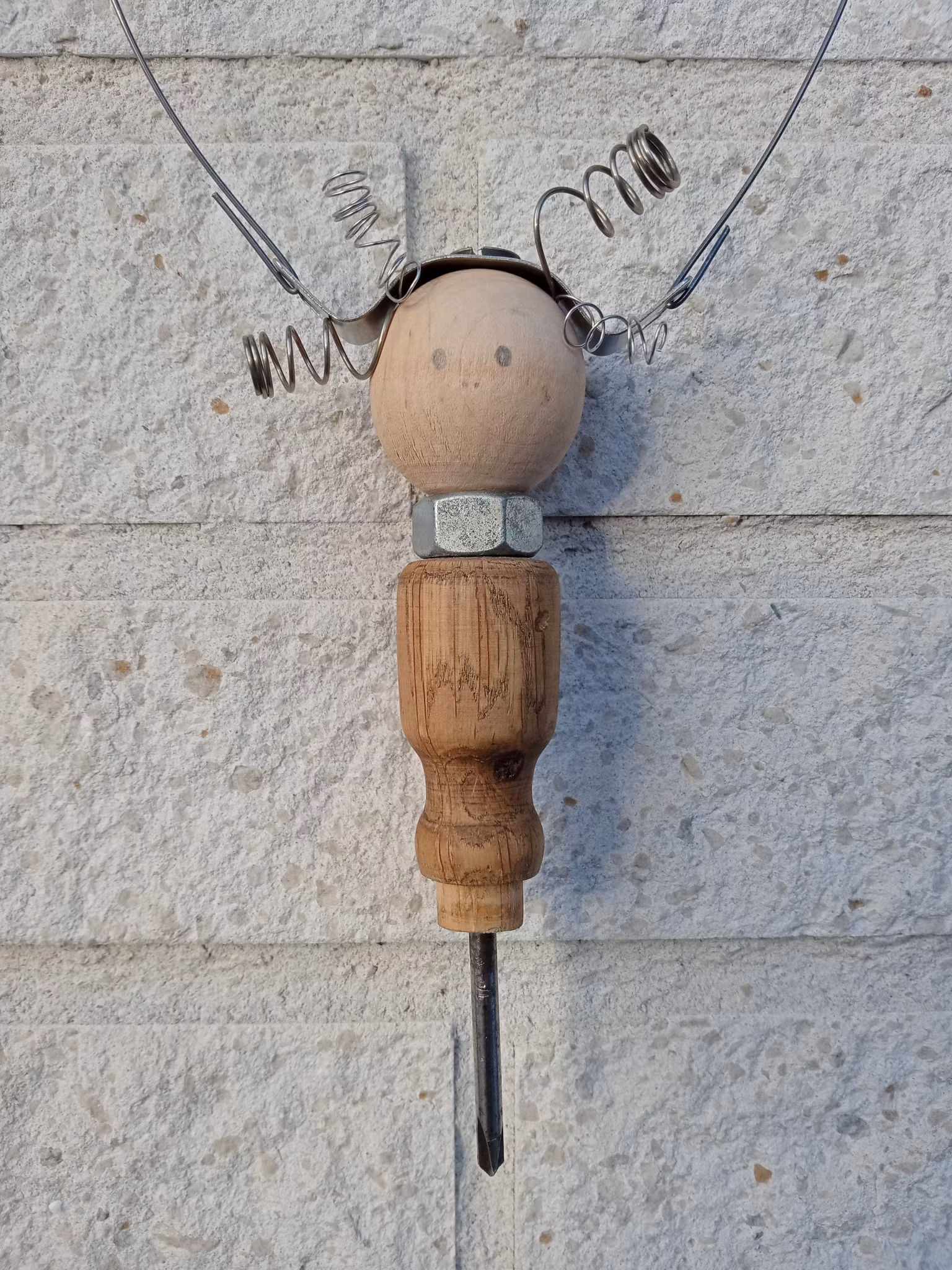 'Mr Mejsel' 175 kr Hängande figur i trä & metall gjord av bl. a en gammal skruvmejsel. Figurens höjd: 15 cm I lager. Lägg i korgen Lagersaldo: 1 Artikelnummer: 11 Dela Information Hängande figur i trä & metall gjord av bl. a en gammal skruvmejsel. Figurens höjd: 15 cm